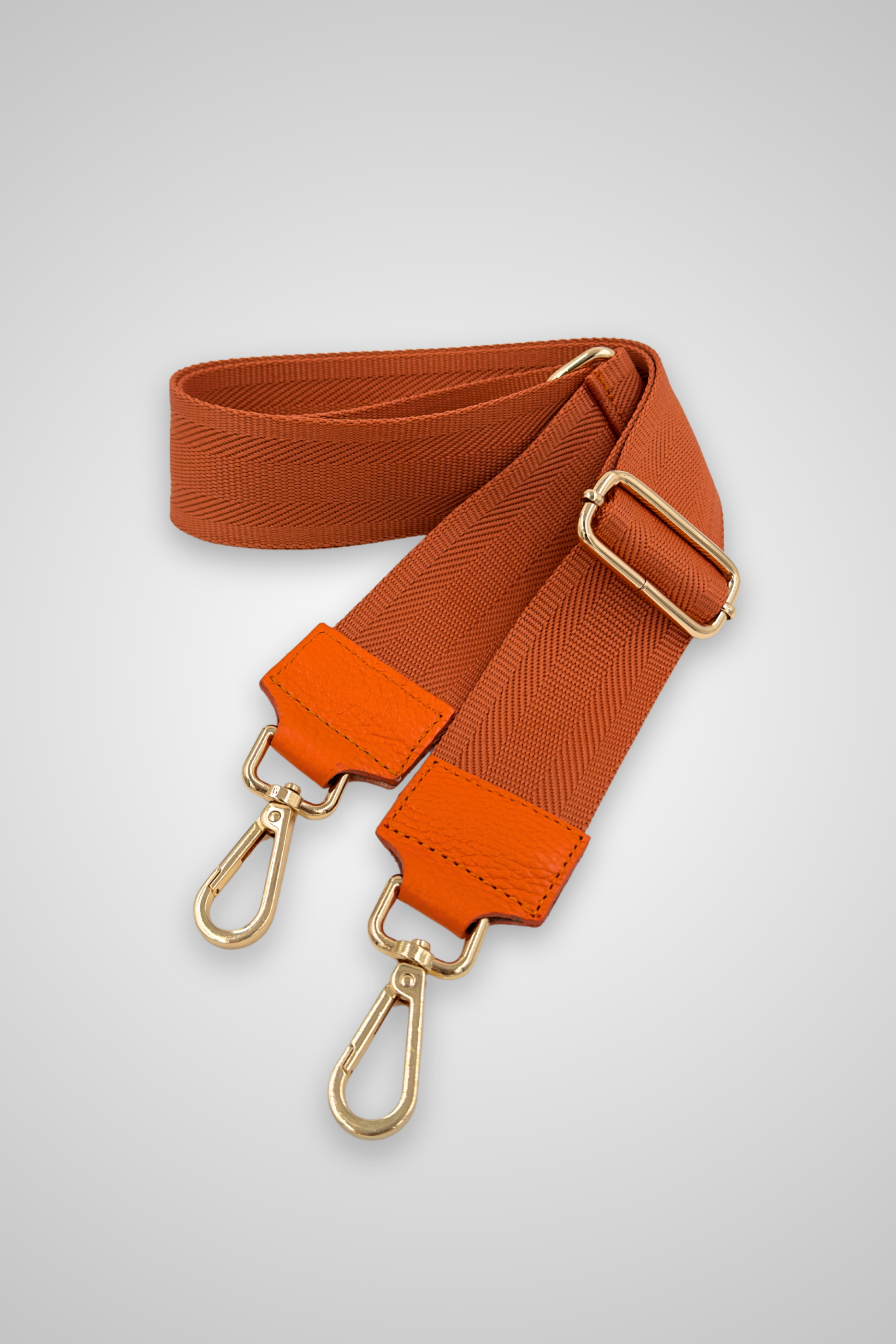 Add a pop of color and sparkle to your favorite bag with this playful orange strap featuring chic gold details. Perfect for brightening up any outfit while offering comfortable, stylish support.
