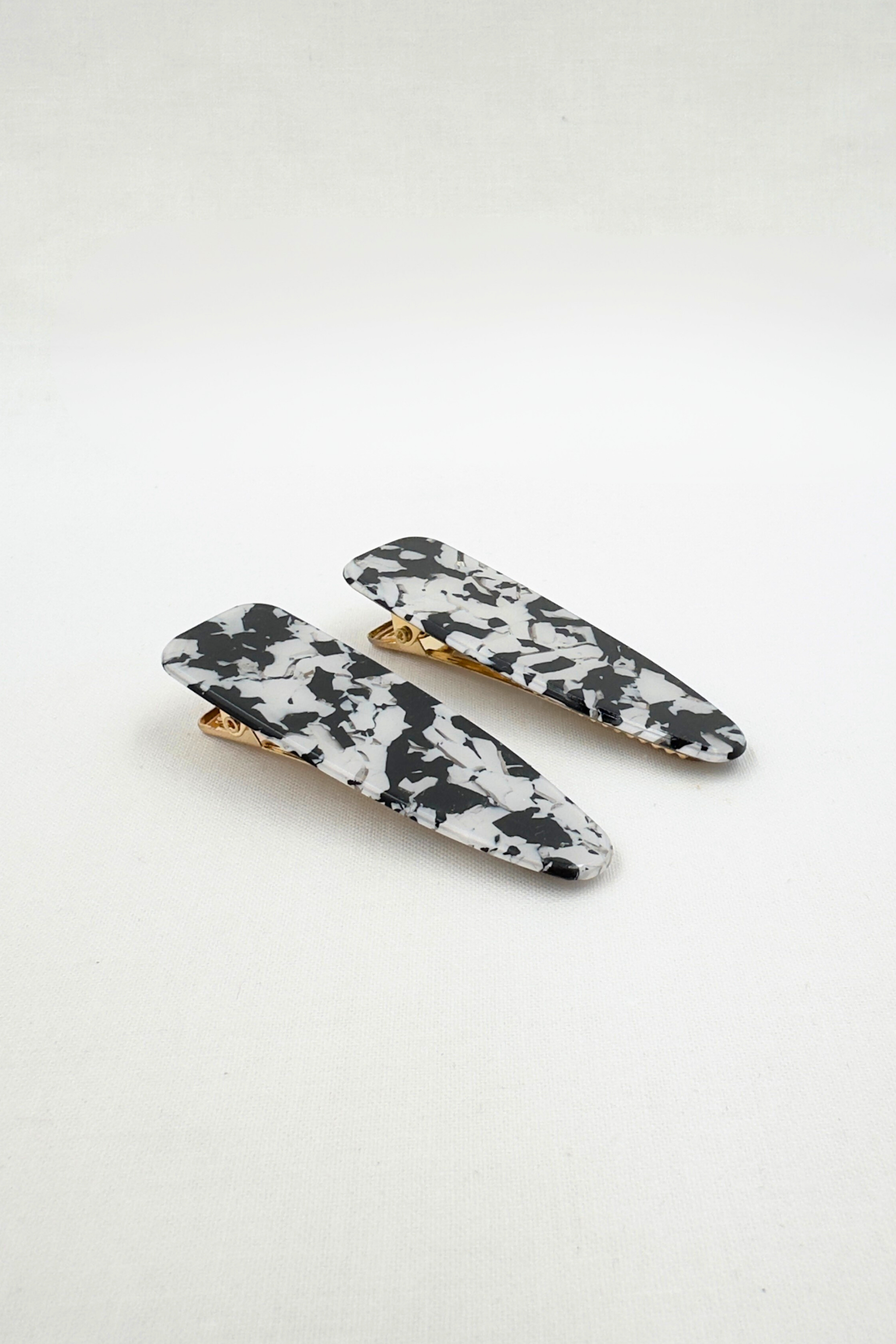 Elevate your style with the Barrette Black Terrazzo, featuring a daring black and white terrazzo design that commands attention. This sleek accessory adds a bold, contemporary edge to your look, perfect for those who embrace fearless fashion. Durable and eye-catching, itβs the ultimate statement piece for any outfit.