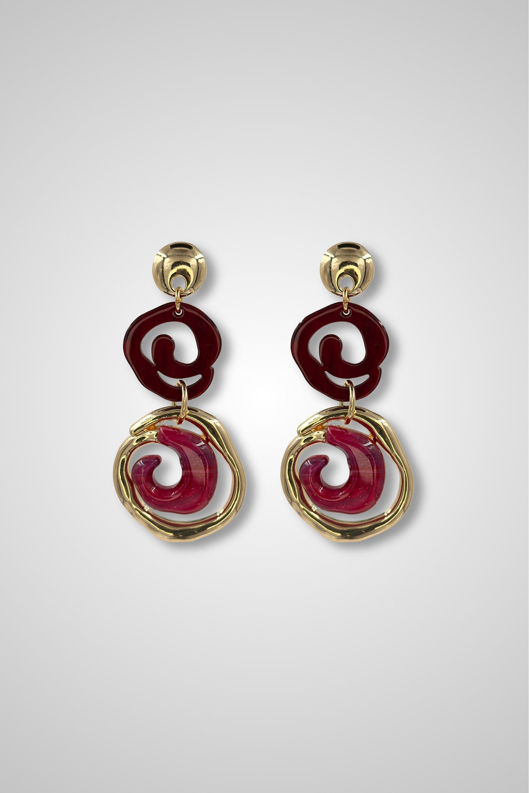 Capture hearts with these Ethereal earrings, where deep crimson tones meet luxurious gold accents for an enchanting finish. Each pair whispers romance through its rich, moody palette—perfect for elevating an evening look or adding a touch of sophisticated allure to your everyday style. Let these jewels become your signature piece, a subtle declaration of elegance and timeless beauty. (Model photo is AI generated)